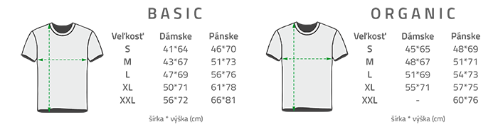 • Dôležité info: Nakoľko je každé tričko vyrábané na mieru, venujte dostatočnú pozornosť výberu správnej veľkosti. Ideálne je pomerať obľúbené tričko ktoré sedí a porovnať ho s tabuľkou veľkostí.